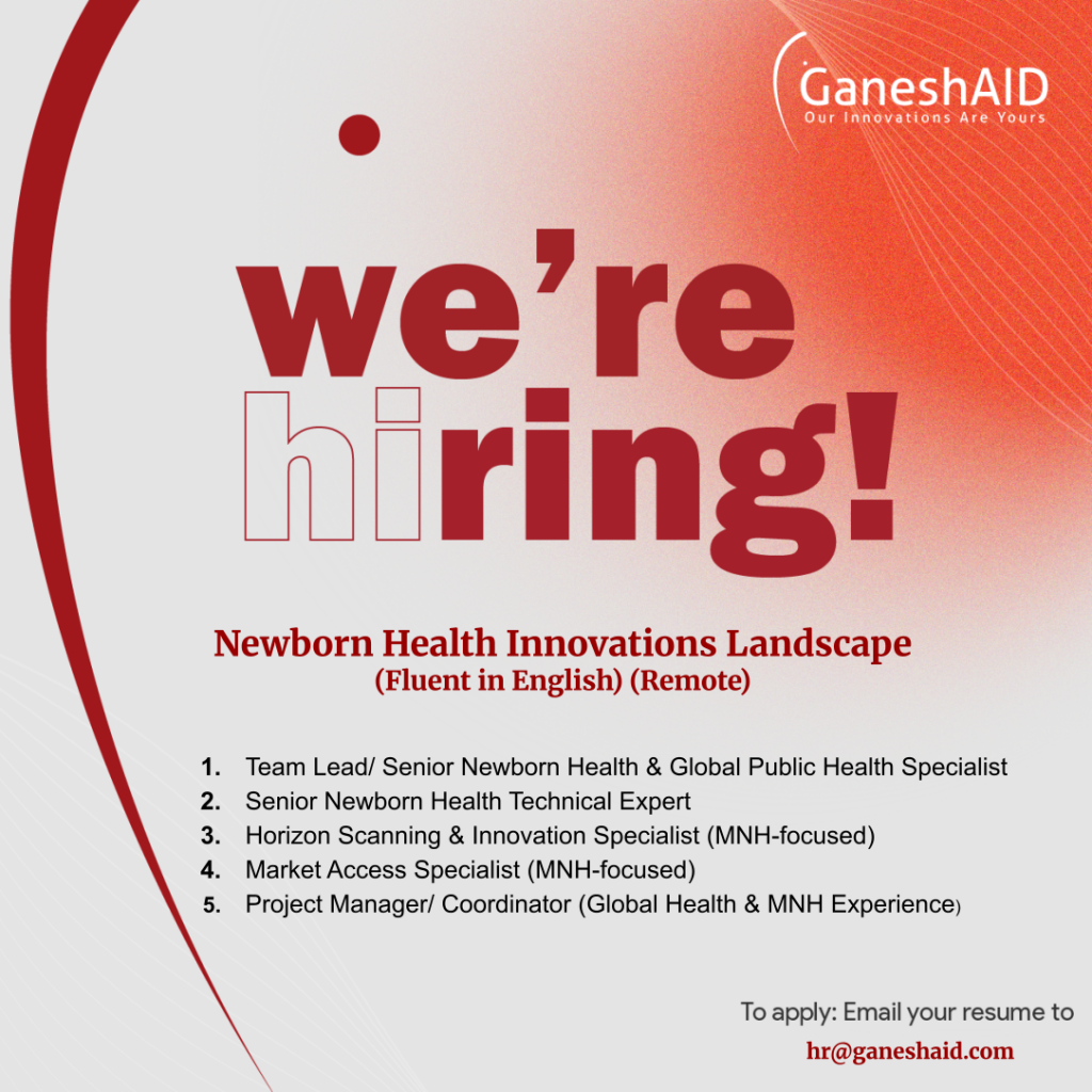 - Minimum 8 years in maternal & newborn health (MNH), focused on LMIC settings, with an established network across industry, academia, international agencies, and government.
