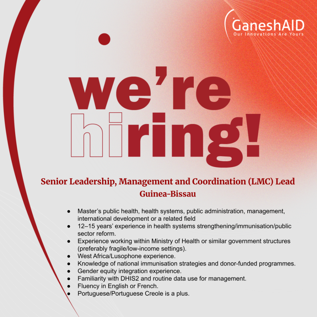 The Senior LMC Lead will provide embedded, hands-on technical leadership to strengthen leadership, management and coordination capacities of the Expanded Programme on Immunization (EPI) in Guinea-Bissau. The role focuses on institutional performance, decision-making quality, accountability and sustainability, rather than operational delivery.